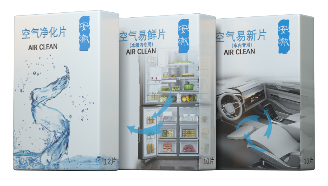 產品具有降解污染、抗菌、除污等特性,無任何毒副特性,針對冰箱異味、鞋柜異味、兒童玩具細菌等問題,能在短時間內氧化分解多重污染物,同時殺滅物體表層存在的細菌、真菌、病菌,給家人一個綠色、健康的環境。