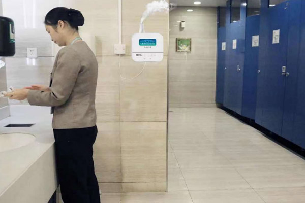 使用壁掛式智能霧化器進行治理,根據異味程度設置定時噴霧檔位.
